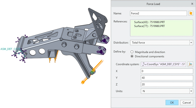 Trong hộp thoại Force Load , chọn Directional components trong mục Define By.